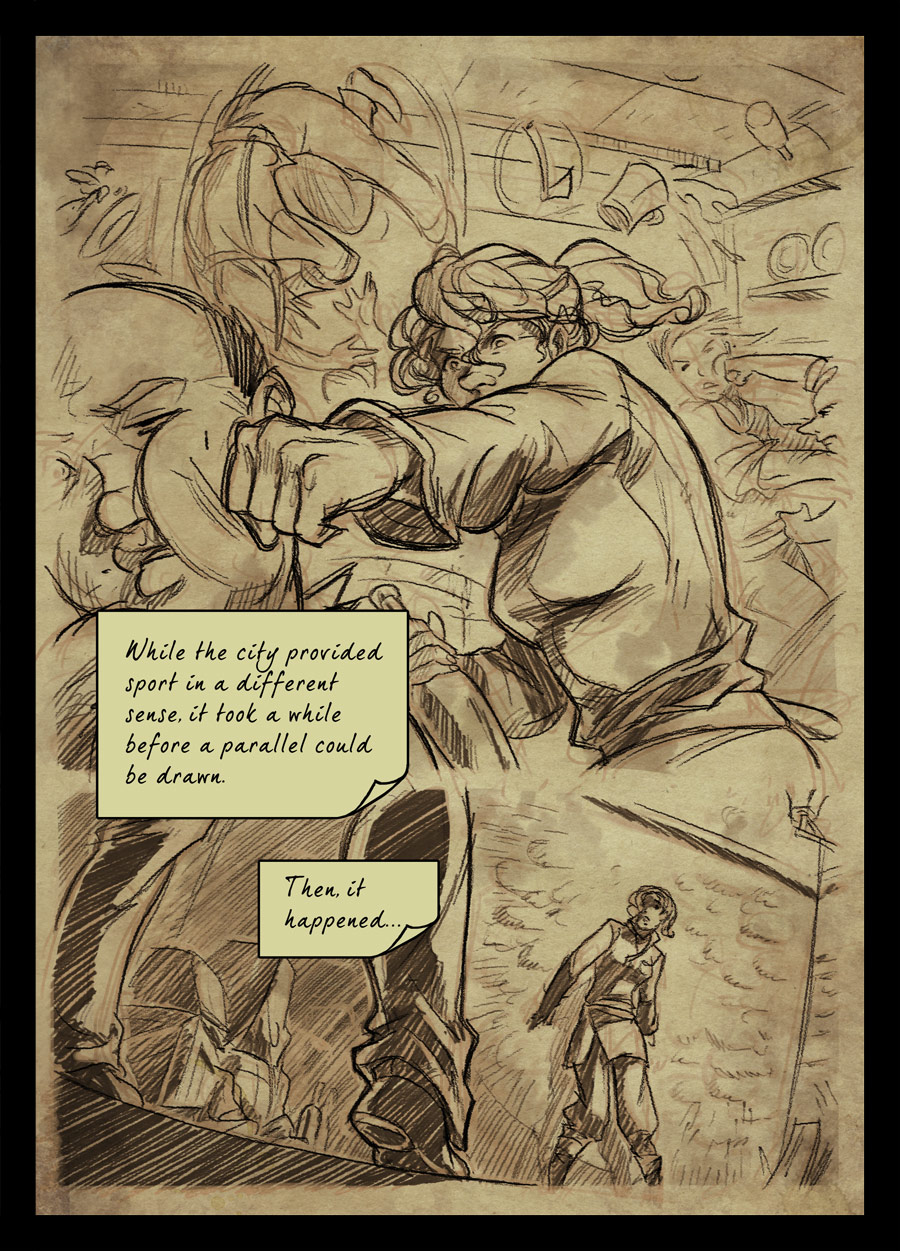 Technically not a two page update today, the journal pages will all be two page spreads, but since the panels in this spread neatly divide in the middle, you get to see them full sized.